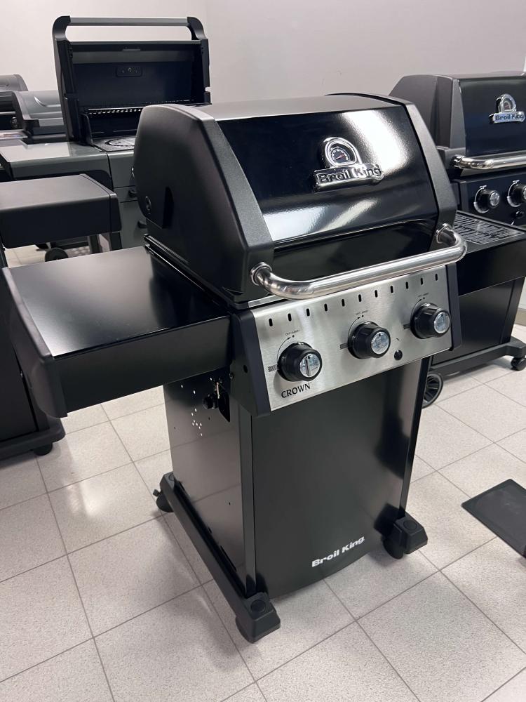 Broil King - Crown 310 v základnej výbave disponuje troma výkonnými hlavnými horákmi. Tento gril ponúka silu a výkon s radom jedinečných konštrukčných riešení ako je dvojité veko, obojstranné grilovacie liatinové rošty (ostré hrany roštu sú ideálne na prípravu steakov, otočením získate rošt so žliabkom, ktorý sa skvele hodí na grilovanie kuracieho mäsa, zeleniny a ďalších drobnejších potravín ), čierna posmaltovaná ohrievacia mriežka (tzv. druhé grilovacie poschodie využijete predovšetkým na ohrievanie pokrmov či nepriame grilovanie), kryty horákov Flav-R-Wave™ z nerezovej ocele či ventily s plynulou reguláciou výkonu Linear-Flow™ pre presné ovládanie teploty.