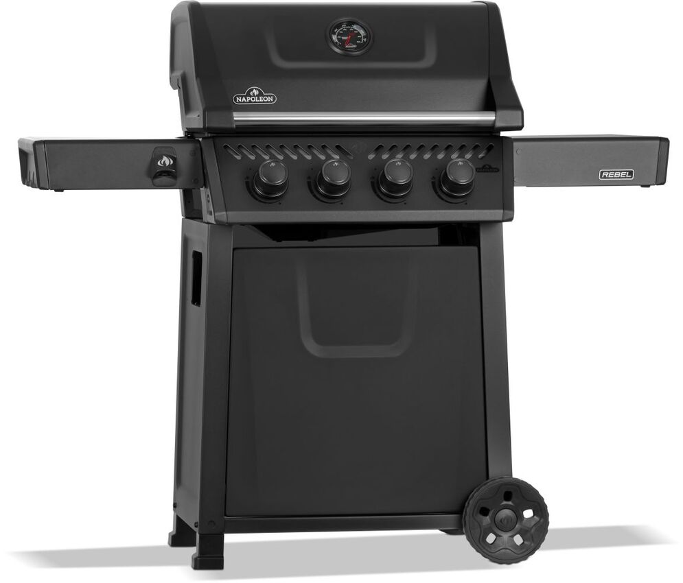 NAPOLEON REBEL 425 čierny 4-horákový plynový gril s teplomerom a planchou